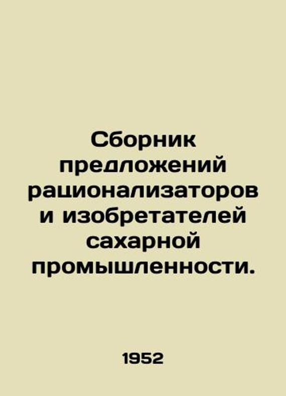 Compendium of proposals by innovators and inventors of the sugar industry. In Russian /Sbornik predlozheniy ratsionalizatorov i izobretateley sakharnoy promyshlennosti. Under the editorship of Chief Engineer of Glavsugar V. V. Yapasskurt Pishchepromyzdat. 1952. 330g. Circulation 3000. 160 drawings in the text. We have thousands of titles and often several copies of each title may be available. Please feel free to contact us for a detailed description of the copies available. SKUalbc80e9ae45f78a638.