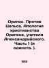 Origen. Against Celsus. The Apology of Christianity of Origen Teacher of Alexandria. Part 1 (and Unity.). In Russian (ask us if in doubt)/Origen. Protiv Tselsa. Apologiya khristianstva Origena uchitelya Aleksandriyskogo. Chast 1 (i edinstv. ). Translated from Greek with introduction and comment by Prof. L. Pisarev. Kazan Central type. 1912 xxxii 482 p. SKUalbc81fbe4ed916c36e.