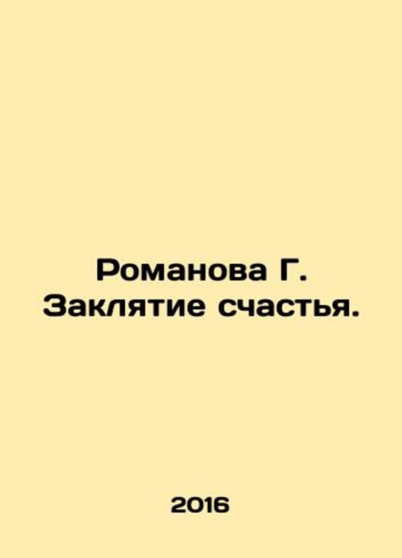 Romanova G. The spell of happiness. In Russian /Romanova G. Zaklyatie schastya. Novel M E 2016.We have thousands of titles and often several copies of each title may be available. Please feel free to contact us for a detailed description of the copies available. SKUalbc83683a25fcc00b1.