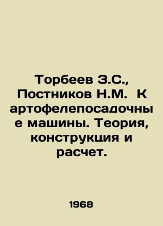Torbeyev Z.S., Postnikov N.M. Potato-planting machines. Theory, construction and calculation. In Russian /Torbeev Z.S., Postnikov N.M. Kartofeleposadochnye mashiny. Teoriya, konstruktsiya i raschet. M. Machinostroenie. 1968. We have thousands of titles and often several copies of each title may be available. Please feel free to contact us for a detailed description of the copies available. SKUalbc845d9392ce51e3d.
