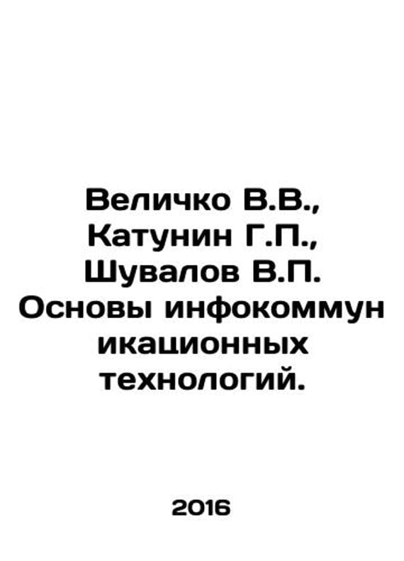 Velichko V.V., Katunin G.P., Shuvalov V.P. Fundamentals of infocommunication technologies. In Russian /Velichko V.V., Katunin G.P., Shuvalov V.P. Osnovy infokommunikatsionnykh tekhnologiy. M Hotline-Telecom 2016. The textbook considers a set of issues related to infocommunication technologies from a unified perspective: it presents the basics of building telecommunication systems and networks, gives an idea of modern wireless means of communication, including mobile means of communication, considers the principles of building next-generation networks and the technologies used in this process. The book also contains a description of specific solutions for implementing NGN networks. The second edition (the first edition came out in 2009) eliminated a number of typos and substantially revised chapters 12 and 14, added material on OFDM technology, considered the technology of building software-configurable networks (PCN). We have thousands of titles and often several copies of each title may be available. Please feel free to contact us for a detailed description of the copies available. SKUalbc8af7001aef48441.