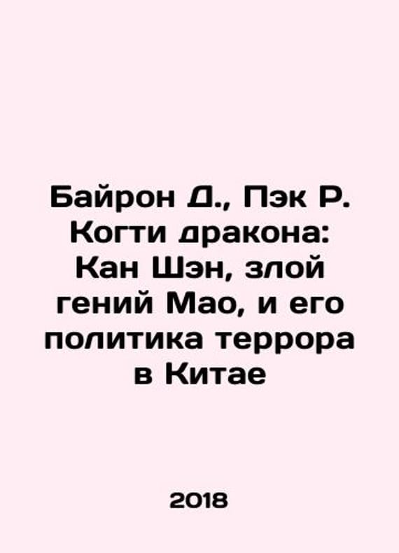 Byron D., Baek R. Dragon Claws: Kang Sheng, Maos Evil Genius, and His Politics of Terror in China In Russian /Bayron D., Pek R. Kogti drakona: Kan Shen, zloy geniy Mao, i ego politika terrora v KitaeFesiun M. Silver Threads 2018.We have thousands of titles and often several copies of each title may be available. Please feel free to contact us for a detailed description of the copies available. SKUalbc8ba4694226a91ad.