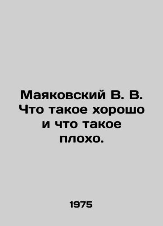 Mayakovsky V.V. What is good and what is bad. In Russian /Mayakovskiy V. V. Chto takoe khorosho i chto takoe plokho. Baby 1975. We have thousands of titles and often several copies of each title may be available. Please feel free to contact us for a detailed description of the copies available. SKUalbc8d3327dad7974a5.