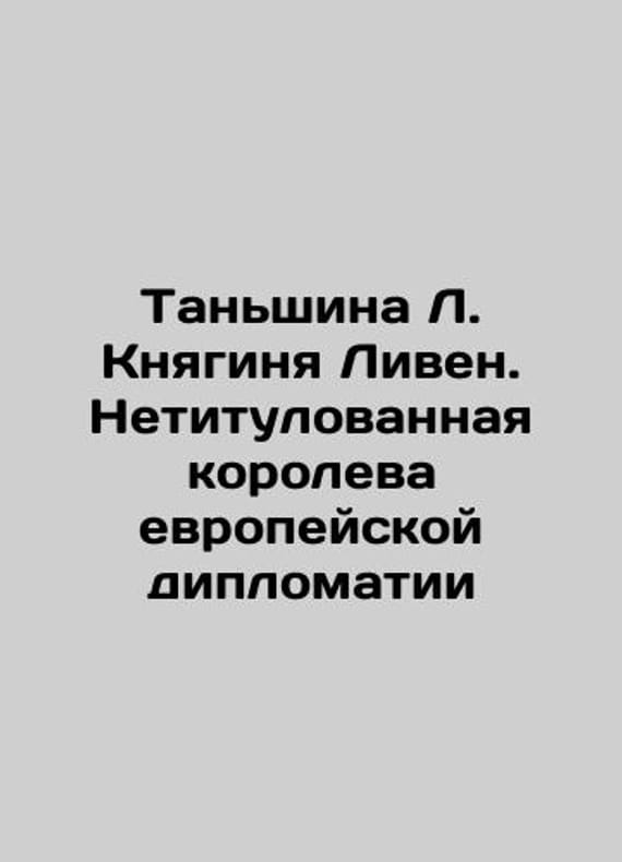 Tanshina L. Princess Lieven: The Untitled Queen of European Diplomacy In Russian /Tanshina L. Knyaginya Liven. Netitulovannaya koroleva evropeyskoy diplomatii St. Petersburg: Eurasia 2021. 384s. We have thousands of titles and often several copies of each title may be available. Please feel free to contact us for a detailed description of the copies available. SKUalbc97d648633607353.