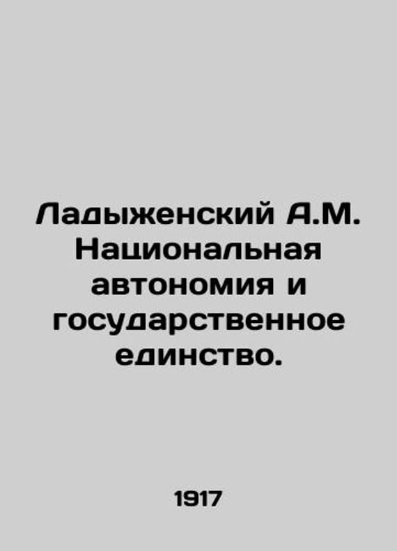 Ladyzhensky A.M. National autonomy and state unity. In Russian (ask us if in doubt)/Ladyzhenskiy A.M. Natsionalnaya avtonomiya i gosudarstvennoe edinstvo. M. Publishing House of the Peoples Teacher. Typography Public Benefit 1917. 32c. We have thousands of titles and often several copies of each title may be available. Please feel free to contact us for a detailed description of the copies available. SKUalbc984b1f84267e62e