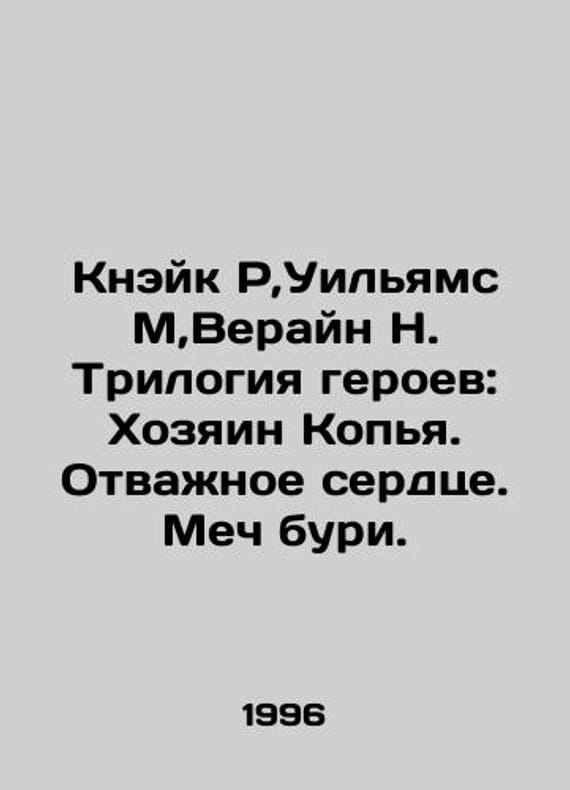 Snake R, Williams M, Verain N. Trilogy of Heroes: Master of the Spear. Brave Heart. Sword of the Storm. In Russian /Kneyk R,Uilyams M,Verayn N. Trilogiya geroev: Khozyain Kopya. Otvazhnoe serdtse. Mech buri. The Spear saga St. Petersburg Terra, ABC, 1996. 496 and 480 and 480 pages. We have thousands of titles and often several copies of each title may be available. Please feel free to contact us for a detailed description of the copies available. SKUalbc9bd80eb0cf26e2f.