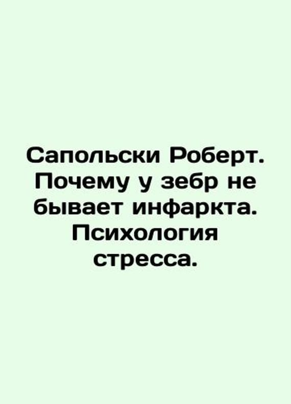 Sapolski Robert. Why zebras dont have a heart attack. The psychology of stress. In Russian /Sapolski Robert. Pochemu u zebr ne byvaet infarkta. Psikhologiya stressa.Series: Psychologist of St. Petersburg, 2021. 480We have thousands of titles and often several copies of each title may be available. Please feel free to contact us for a detailed description of the copies available. SKUalbc9e50ab2e4b99bf0.