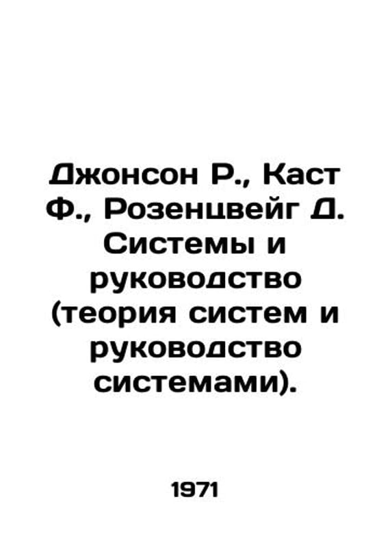 Johnson R., Kast F., Rosenzweig D. Systems and Leadership (Systems Theory and Systems Management). In Russian /Dzhonson R., Kast F., Rozentsveyg D. Sistemy i rukovodstvo (teoriya sistem i rukovodstvo sistemami). Translated from English by M.: Soviet Radio. 1971.We have thousands of titles and often several copies of each title may be available. Please feel free to contact us for a detailed description of the copies available. SKUalbc9f769ea7145be71.