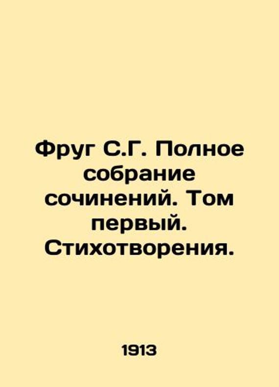 Frug S.G. Complete collection of essays. Volume one. Poems. In Russian /Frug S.G. Polnoe sobranie sochineniy. Tom pervyy. Stikhotvoreniya. Shermans Odessa Book, 1913, 304 pp. We have thousands of titles and often several copies of each title may be available. Please feel free to contact us for a detailed description of the copies available. SKUalbca20473a02e6dc7b.