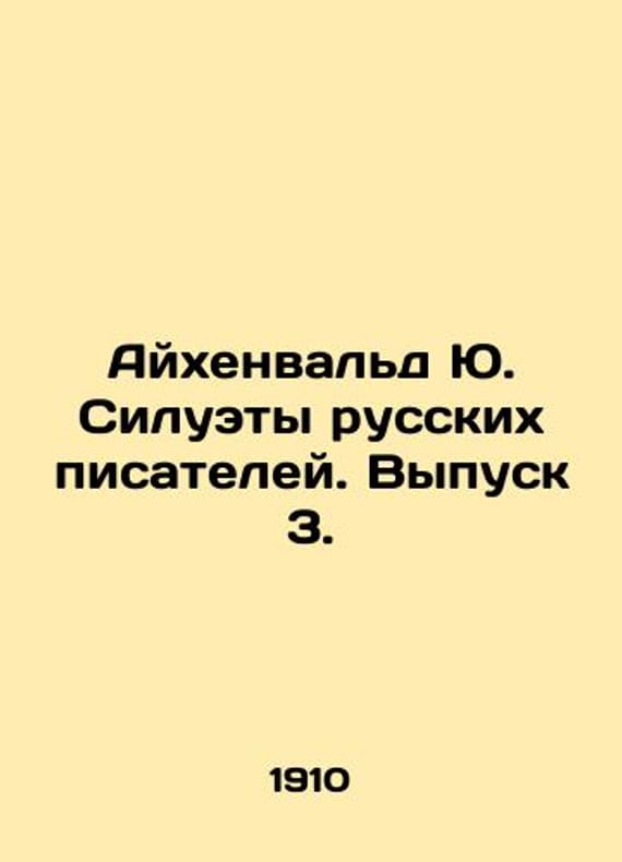 Eichenwald Y. Silhouettes of Russian Writers. Issue 3. In Russian /Aykhenvald Yu. Siluety russkikh pisateley. Vypusk 3. M. Publishing House Scientific Word. 1910. 138 p. We have thousands of titles and often several copies of each title may be available. Please feel free to contact us for a detailed description of the copies available. SKUalbca55efa851b20df0.