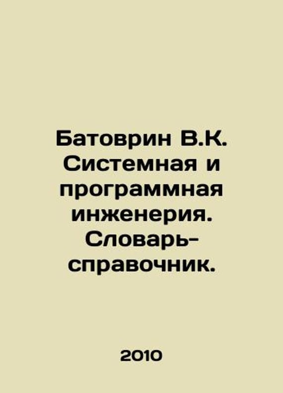 Batovrin V.K. System and software engineering. Dictionary-reference. In Russian /Batovrin V.K. Sistemnaya i programmnaya inzheneriya. Slovar-spravochnik. A textbook for higher education institutions. M. DMK Press. 2010. We have thousands of titles and often several copies of each title may be available. Please feel free to contact us for a detailed description of the copies available. SKUalbca5bb2771d45a07a.