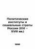 Russias Political Institutions and Social Stratos (16th and 18th Centuries) In Russian /Politicheskie instituty i sotsialnye straty Rossii (XVI XVIII vv.) Theses from the International Conference on October 2-3, 1998, Ed.E.A. Antonov, A.B. Kamensky, A.I. Komissarenko, A.L. Yurganov. We have thousands of titles and often several copies of each title may be available. Please feel free to contact us for a detailed description of the copies available. SKUalbca82cf4ac4cb8506.