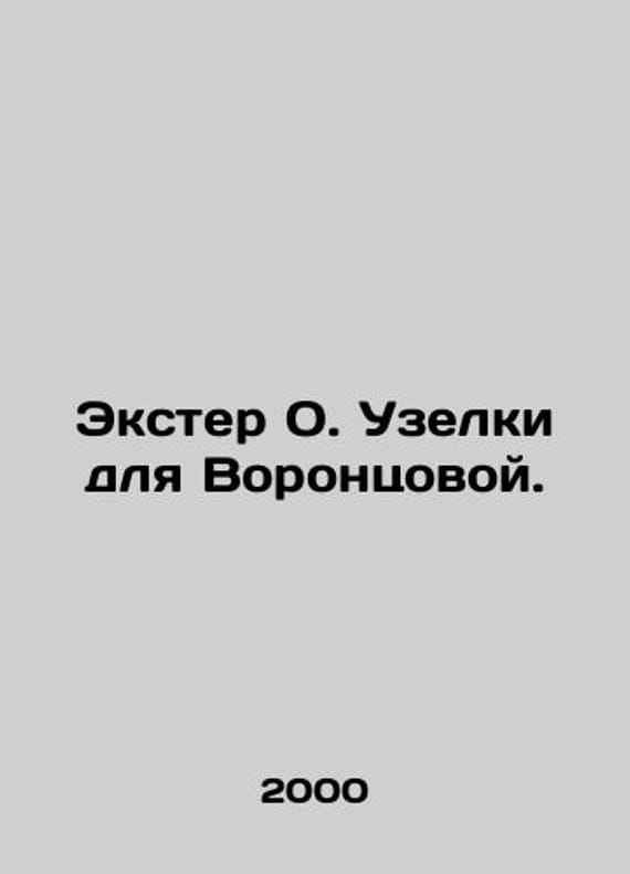 Exter O. Knots for Vorontsova. In Russian /Ekster O. Uzelki dlya Vorontsovoy. ACT M novel 2000.We have thousands of titles and often several copies of each title may be available. Please feel free to contact us for a detailed description of the copies available. SKUalbcaa040b940f8d49f.