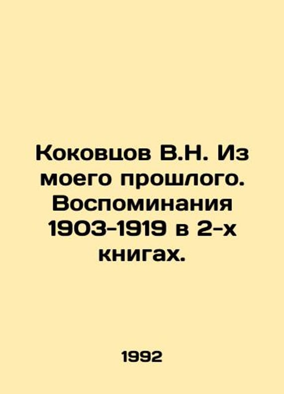 V.N. Kokovtsov From My Past. Memories of 1903-1919 in 2 Books. In Russian /Kokovtsov V.N. Iz moego proshlogo. Vospominaniya 1903-1919 v 2-kh knigakh. M. Nauka. 1992. We have thousands of titles and often several copies of each title may be available. Please feel free to contact us for a detailed description of the copies available. SKUalbcaf1f539990462b4.
