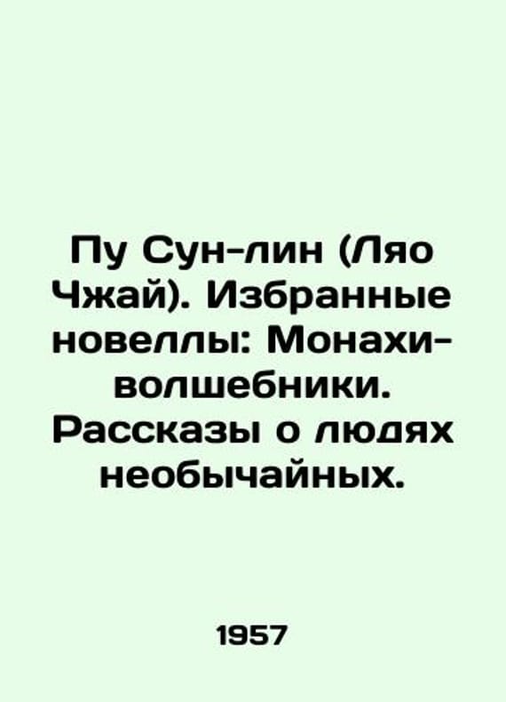 Pu Soon-lin (Liao Zhai). Selected Novels: Monks-Wizards. Tales of Extraordinary People. In Russian /Pu Sun-lin (Lyao Chzhay). Izbrannye novelly: Monakhi-volshebniki. Rasskazy o lyudyakh neobychaynykh.Translated from Chinese and Commentary by V.M. Alekseev. Edited and presented by N.T. Fedorenko. M. GIHL 1957.We have thousands of titles and often several copies of each title may be available. Please feel free to contact us for a detailed description of the copies available. SKUalbcafea9a3a6f0bf44.