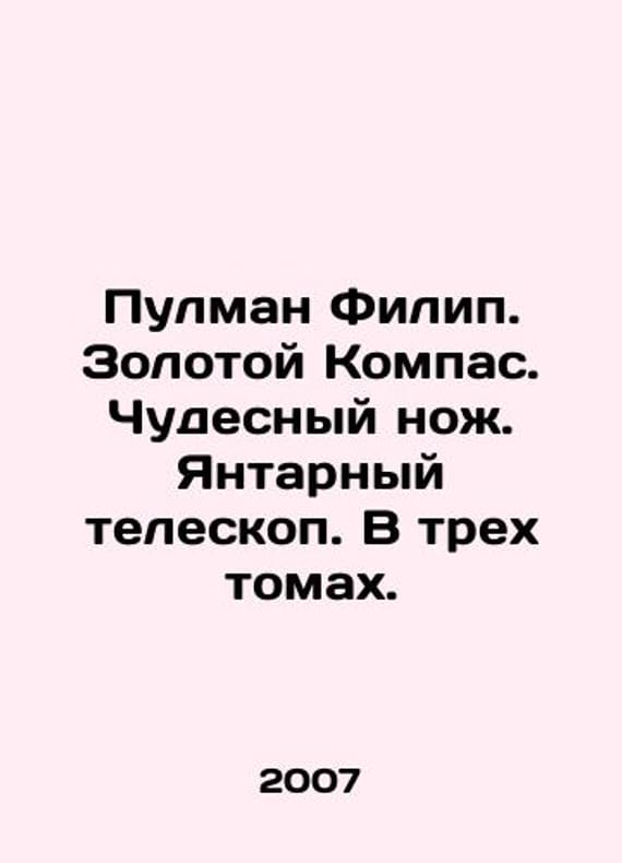 Pullman Philip. Golden Compass. Wonderful knife. Amber telescope. In three volumes. In Russian /Pulman Filip. Zolotoy Kompas. Chudesnyy nozh. Yantarnyy teleskop. V trekh tomakh. M. Rosman. 2007-2012. We have thousands of titles and often several copies of each title may be available. Please feel free to contact us for a detailed description of the copies available. SKUalbcafecc8656575a06.