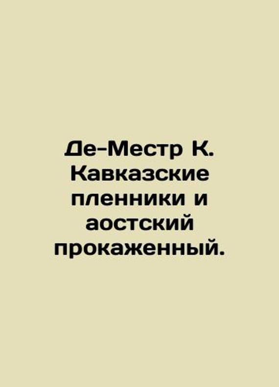 De Mestre K. Caucasian captives and the Aosta leper. In French /De-Mestr K. Kavkazskie plenniki i aostskiy prokazhennyy. In French, S.Pb.1914. 61 We have thousands of titles and often several copies of each title may be available. Please feel free to contact us for a detailed description of the copies available. SKUalbcb1a6107f10b1abb.