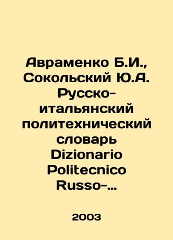 Avramenko B.I., Sokolsky Yu.A. Dizionario Politecnico-Italiano Russo-Italian Polytechnic Dictionary. In Russian /Avramenko B.I., Sokolskiy Yu.A. Russko-italyanskiy politekhnicheskiy slovar Dizionario Politecnico Russo-Italiano. About 110,000 Rousseau terms in 2003, 1120 s. We have thousands of titles and often several copies of each title may be available. Please feel free to contact us for a detailed description of the copies available. SKUalbcb349110d9f844bd.