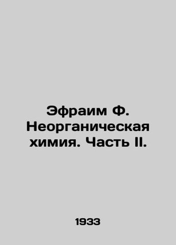 Ephraim F. Inorganic Chemistry. Part II. In Russian /Efraim F. Neorganicheskaya khimiya. Chast II. Guide for in-depth study and reference. Translation from the 4th German supplemented and amended edition of L. Gochemtekhizdat 1933. We have thousands of titles and often several copies of each title may be available. Please feel free to contact us for a detailed description of the copies available. SKUalbcb370b845a4dc724.
