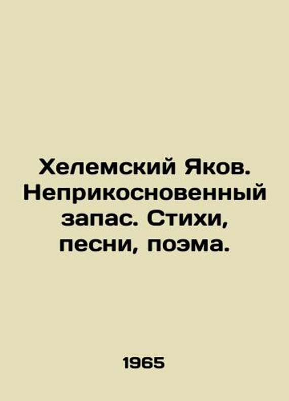 Helemsky Jacob. An untouchable stock. Poems, songs, poems. In Russian /Khelemskiy Yakov. Neprikosnovennyy zapas. Stikhi, pesni, poema. Helemsky Yakov. Untouchable stock. Poems, songs, poems. 1965. We have thousands of titles and often several copies of each title may be available. Please feel free to contact us for a detailed description of the copies available. SKUalbcbfbc220d84d255e.