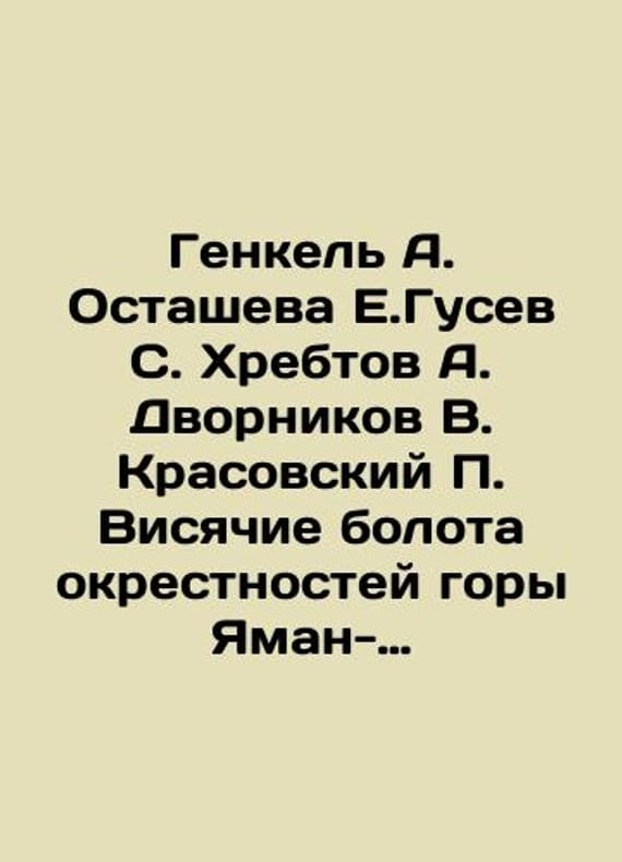 Genkel A. Ostasheva E. Gusev S. Ridtov A. Dvornikov V. Krasovsky Hanging marshes around Mount Yaman-Tau in Southern Urals. Floral notes. Weeds of the Urals are like oil plants In Russian /Genkel A. Ostasheva E.Gusev S. Khrebtov A. Dvornikov V. Krasovskiy Visyachie bolota okrestnostey gory Yaman-Tau na Yuzhnom Urale.Floristicheskie zametki. Sornyaki Urala, kak maslichnye rasteniya. Ob oshibochnosti otneseniya k lesostepi Krasnoufimskoy i Kungurskoy territoriy Priuralya Perm Biological Scientific Research Institute, Vol.8, Vol.6-8, Vol.233-251, Perm. 1933.233-280 We have thousands of titles and often several copies of each title may be available. Please feel free to contact us for a detailed description of the copies available. SKUalbcbfbe9519e673e57.