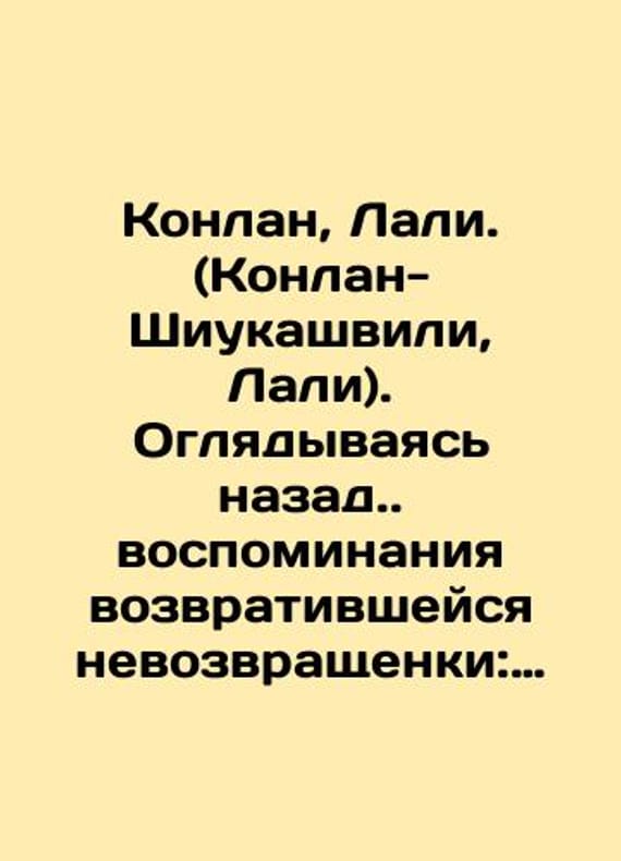 Conlan, Lali. (Conlan-Shikashvili, Lali). Looking back. memories of the returning non-returnee: an autobiographical tale In Russian /Konlan, Lali. (Konlan-Shiukashvili, Lali). Oglyadyvayas nazad. vospominaniya vozvrativsheysya nevozvrashchenki: avtobiograficheskaya povest Pre-release -Inga Garuchava, Petr Khotyanovsky: post-release -Mikhail Gizhimkreli Tbilisi Merani 2009, 487, 1 p. We have thousands of titles and often several copies of each title may be available. Please feel free to contact us for a detailed description of the copies available. SKUalbcc0905dc7c76853c.