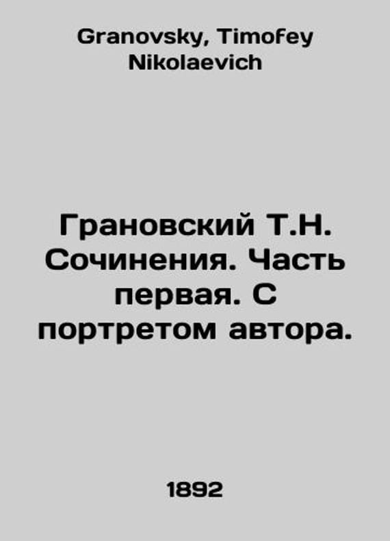 Granovsky T.N. Works. Part one. With a portrait of the author. In Russian /Granovskiy T.N. Sochineniya. Chast pervaya. S portretom avtora. Moscow In A. Mamontovs printing house, 1892. XVI, 425 p. We have thousands of titles and often several copies of each title may be available. Please feel free to contact us for a detailed description of the copies available. SKUalbcc129577697eb583.