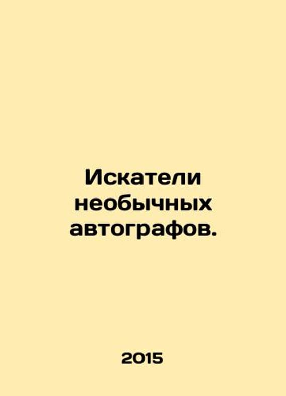 Unusual autograph seekers. In Russian /Iskateli neobychnykh avtografov. Aleksandrova E., Levshin V. Seekers of unusual autographs. Publishing House of Meshcheryakov. 2015 Series: The Big Book. We have thousands of titles and often several copies of each title may be available. Please feel free to contact us for a detailed description of the copies available. SKUalbcc2a0cc8ddf00fef.