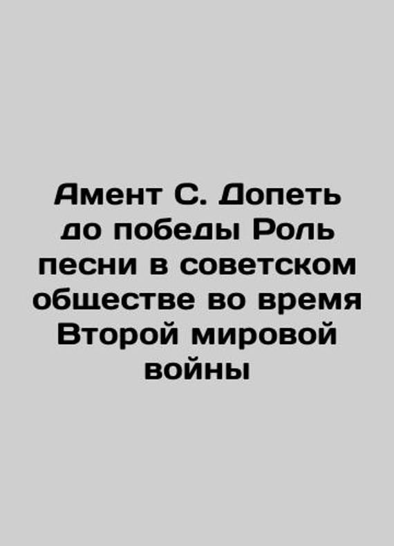 Ament S. Sing to Victory The Role of Song in Soviet Society during World War II In Russian /Ament S. Dopet do pobedy Rol pesni v sovetskom obshchestve vo vremya Vtoroy mirovoy voyny Peter - I. Klimovitskaya. Series Modern Western Russics St. Petersburg Academic Studies Press: Bibliorossika 2021. 416 We have thousands of titles and often several copies of each title may be available. Please feel free to contact us for a detailed description of the copies available. The delivery of this book might be delayed beyond the usual timeframe due to extended processing and preparation before shipment, and faster shipping options are not offered. Please inform us if you need the order by a certain date or have a deadline.SKUalbcc397726853ec685