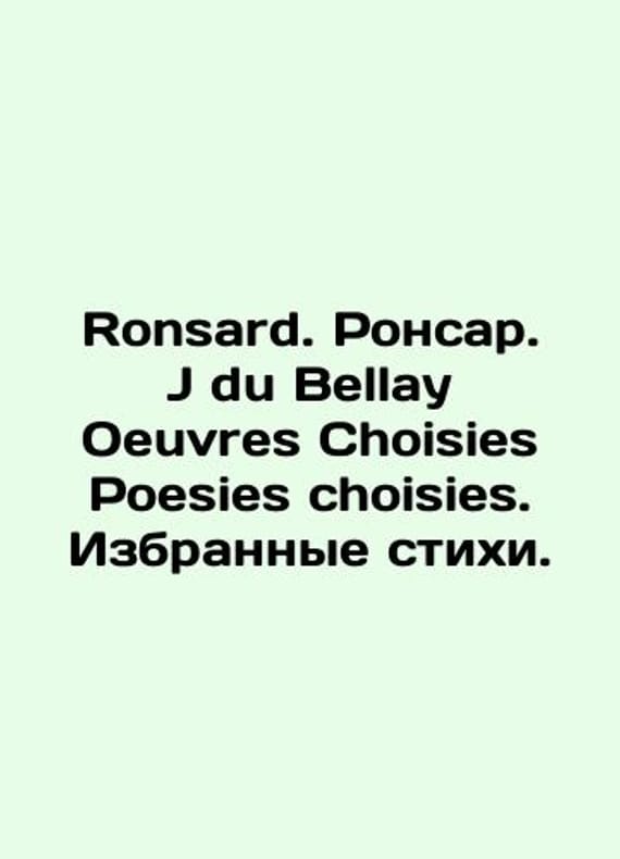 Ronsard. Ronsard. J du Bellay Oeuvres Choisies Poesies choisies. Selected poems. In French /Ronsard. Ronsar. J du Bellay Oeuvres Choisies Poesies choisies. Izbrannye stikhi. Parts I.II. In French. Paris Librairie Larousse 1933-1934. 80s, 90s. We have thousands of titles and often several copies of each title may be available. Please feel free to contact us for a detailed description of the copies available. SKUalbcc6eb0124338430d.