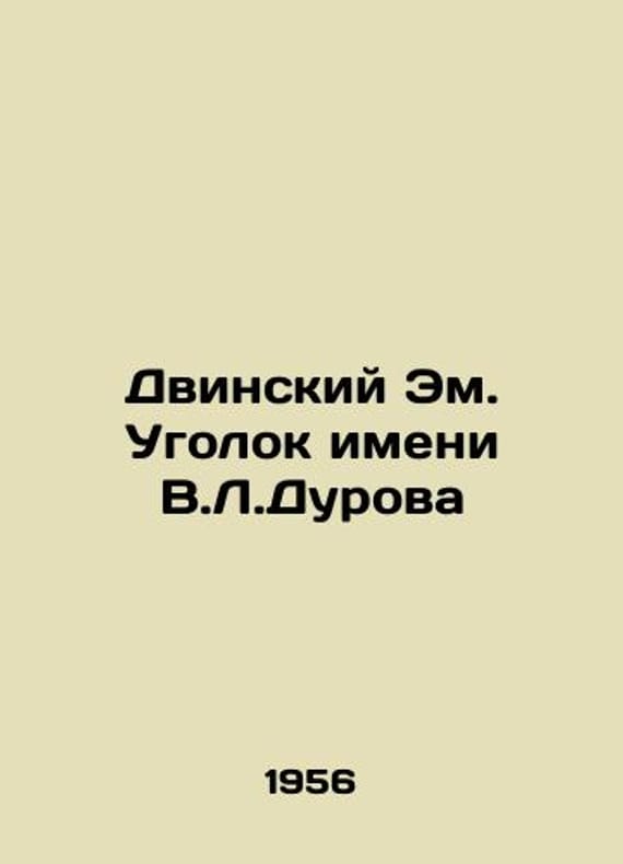 Dvinsky Em. V.L.Durov Corner In Russian /Dvinskiy Em. Ugolok imeni V.L.Durova First Edition Moscow Worker 1956. Durov-training chik. A tour of the corner. Fox scientists. Toptygin and others. The life of Punchi. Four-handed artists. Jugglers from the Pacific Ocean. In the Theatre of Animals. Corner Day. We have thousands of titles and often several copies of each title may be available. Please feel free to contact us for a detailed description of the copies available. SKUalbcc8dc23f1cb8fa95.