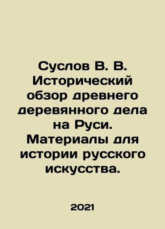 Suslov V. V. Historical Review of Ancient Wooden Business in Russia. Materials for the History of Russian Art. In Russian /Suslov V. V. Istoricheskiy obzor drevnego derevyannogo dela na Rusi. Materialy dlya istorii russkogo iskusstva. St. Petersburg Museum of the Academy of Arts, 2021. 352 p. We have thousands of titles and often several copies of each title may be available. Please feel free to contact us for a detailed description of the copies available. SKUalbcc90455a93809395.