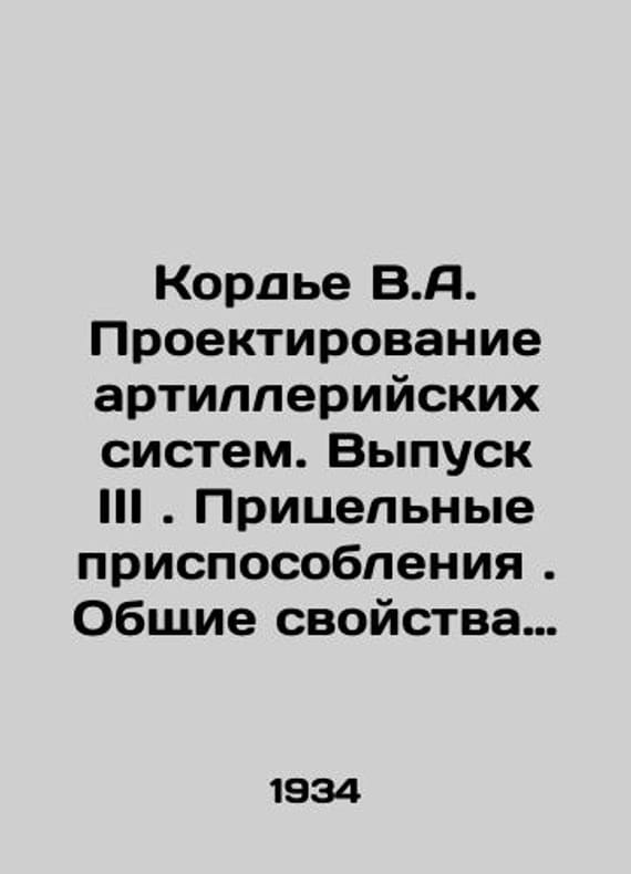Cordier V.A. Artillery Systems Design. Issue III. Aerial Devices. General Properties of Existing Artillery Systems. In Russian /Korde V.A. Proektirovanie artilleriyskikh sistem. Vypusk III. Pritselnye prisposobleniya. Obshchie svoystva sushchestvuyushchikh artsistem. Translation by L.Yu. Mueller, edited by A.A. Tolochkov, an artillery engineer, Leningrad Artillery Academy, 1934. We have thousands of titles and often several copies of each title may be available. Please feel free to contact us for a detailed description of the copies available. The delivery of this book might be delayed beyond the usual timeframe due to extended processing and preparation before shipment, and faster shipping opSKUalbccb21f884fbb1daa