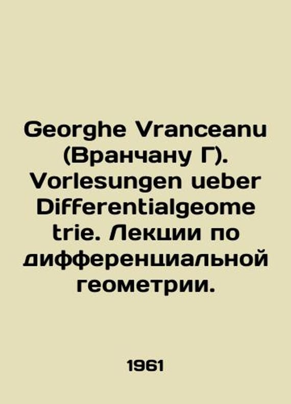Georghe Vranceanu (Vranceanu G). Vorlesungen ueber Differentialgeometrie. Lectures on differential geometry. In German /Georghe Vranceanu (Vranchanu G). Vorlesungen ueber Differentialgeometrie. Lektsii po differentsialnoy geometrii. In German, in two volumes Berlin Akademia Verlag 1961, 398c. We have thousands of titles and often several copies of each title may be available. Please feel free to contact us for a detailed description of the copies available. SKUalbccb35859a565f392.