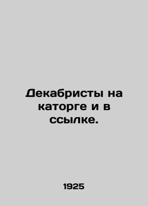Decembrists in hard labour and exile. In Russian /Dekabristy na katorge i v ssylke. A collection of new materials and articles compiled by the Commission of the All-Union Society of Political Weavers for the Celebration of the Centennial of the Decembrist Uprising. Series: Historical and Revolutionary Library of the journal Katorga and Exile. M. Publishing House of Political Weavers (All-Union Society of Political Detainees and Exiled Settlers). 1925. 343c. We have thousands of titles and often several copies of each title may be available. Please feel free to contact us for a detailed description of the copies available. SKUalbcccc5398a6235df5.