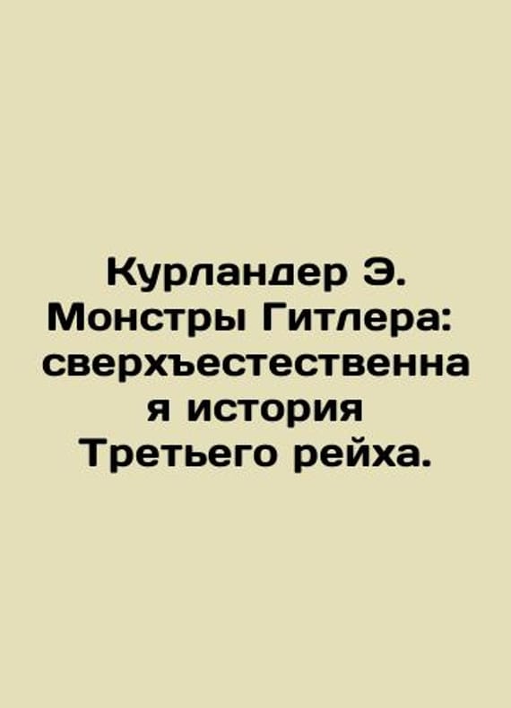Kurlander E. Hitlers Monsters: The Supernatural History of the Third Reich. In Russian /Kurlander E. Monstry Gitlera: sverkhestestvennaya istoriya Tretego reykha. St. Petersburg Vladimir Dal 2021. 642 p. We have thousands of titles and often several copies of each title may be available. Please feel free to contact us for a detailed description of the copies available. SKUalbcd21721d6fcc83ef.