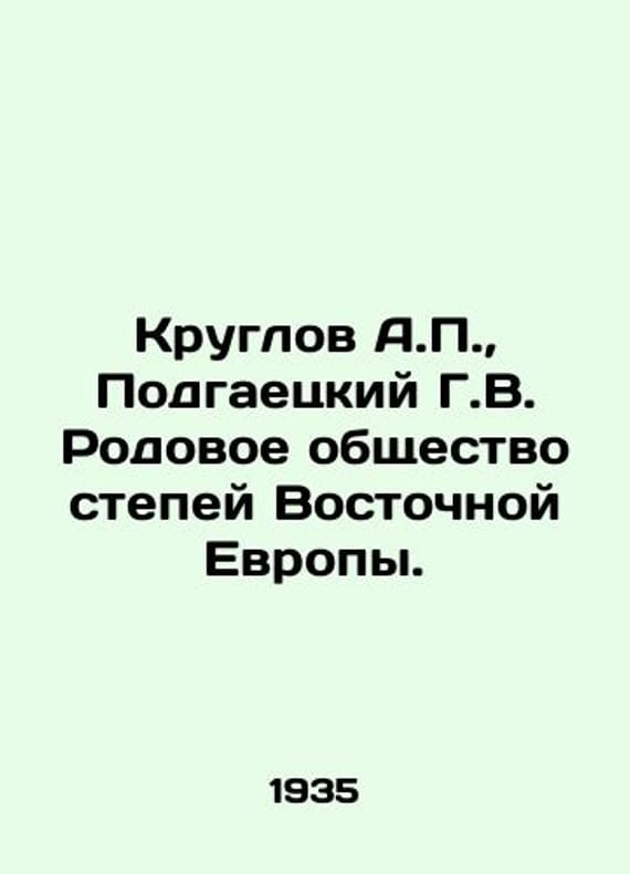 Kruglov A.P. Podhaetsky G.V. Family Society of the Steppes of Eastern Europe. In Russian (ask us if in doubt)/Kruglov A.P. Podgaetskiy G.V. Rodovoe obshchestvo stepey Vostochnoy Evropy. Basic Forms of Material Production 1935 176 p. SKUalbcd34034eb0bfe699.