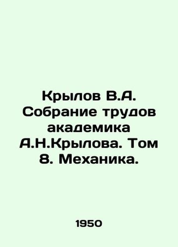 Krylov V.A. Collection of the Works of Academician A.N.Krylov. Volume 8. Mechanics. In Russian /Krylov V.A. Sobranie trudov akademika A.N.Krylova. Tom 8. Mekhanika. Executive Editor, Prof. N.I. Idelson.M., Academy of Sciences of the USSR, 1950, 350s. We have thousands of titles and often several copies of each title may be available. Please feel free to contact us for a detailed description of the copies available. SKUalbcd38679c7445687d.