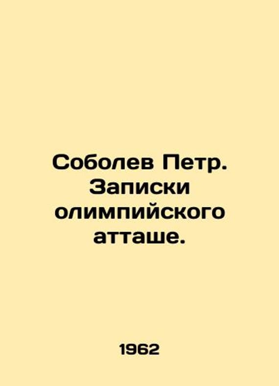 Peter Sobolev. Notes from the Olympic attache. In Russian /Sobolev Petr. Zapiski olimpiyskogo attashe. Moscow. Soviet Russia 1962. 120 p. We have thousands of titles and often several copies of each title may be available. Please feel free to contact us for a detailed description of the copies available. SKUalbcd4a4e59fb0aaea9.