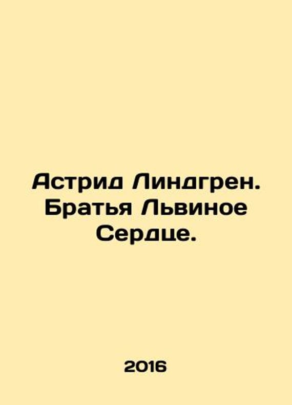 Astrid Lindgren. Brothers of the Lionheart. In Russian /Astrid Lindgren. Bratya Lvinoe Serdtse. Translated from Swede. Belyakova N., Braude L. Artist T.V. Barinova. M., Makhaon, 2016.We have thousands of titles and often several copies of each title may be available. Please feel free to contact us for a detailed description of the copies available. SKUalbcdbad7cd7331add5.