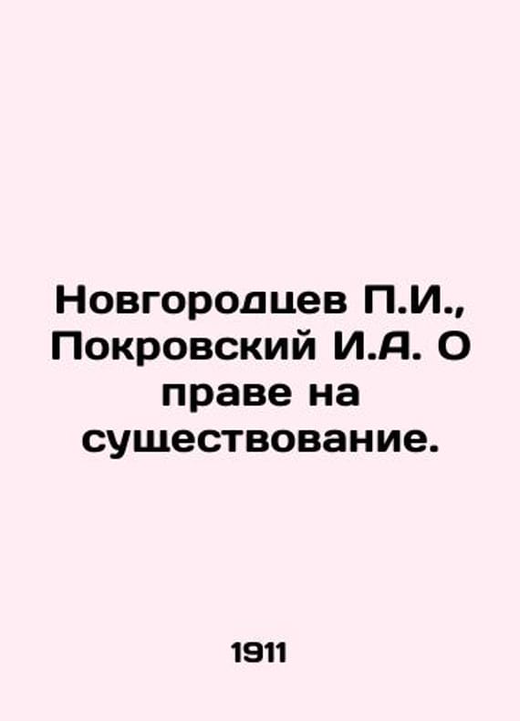 G. Novgorodtsev, I.A. Pokrovsky On the right to exist. In Russian /Novgorodtsev g., Pokrovskiy I.A. O prave na sushchestvovanie. Social and Philosophical Studies. St. Petersburg, Moscow, 1911, 48 p. We have thousands of titles and often several copies of each title may be available. Please feel free to contact us for a detailed description of the copies available. SKUalbcdd784a34d027a50.