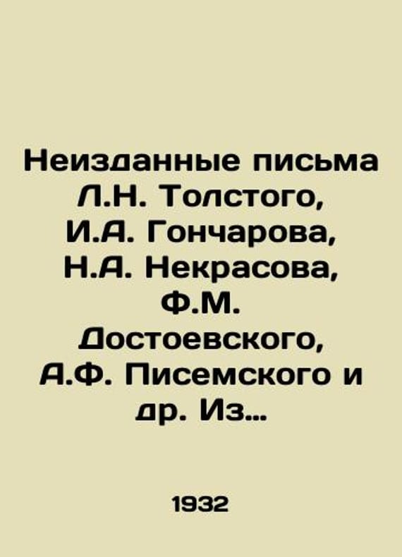 Unpublished letters from L.N. Tolstoy, I.A. Goncharov, N.A. Nekrasov, F.M. Dostoyevsky, A.F. Pisemsky, etc. From the archive of A.N. Ostrovsky. In Russian /Neizdannye pisma L.N. Tolstogo, I.A. Goncharova, N.A. Nekrasova, F.M. Dostoevskogo, A.F. Pisemskogo i dr. Iz arkhiva A.N. Ostrovskogo. Based on materials from the State Theatre Museum named after A.A. Bakhrushin. Prepared for printing by M.D. Prygunov, Y.A. Bakhrushin and N.L. Brodsky. We have thousands of titles and often several copies of each title may be available. Please feel free to contact us for a detailed description of the copies available. SKUalbce60073e3ed2da04.