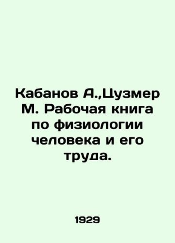 Kabanov A., Tsuzmer M. Working book on the physiology of man and his work. In Russian /Kabanov A., Tsuzmer M. Rabochaya kniga po fiziologii cheloveka i ego truda. M-L Gosizdat 1929. We have thousands of titles and often several copies of each title may be available. Please feel free to contact us for a detailed description of the copies available. The delivery of this book might be delayed beyond the usual timeframe due to extended processing and preparation before shipment, and faster shipping opSKUalbce79eb9c66b34010
