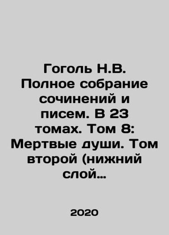 Gogol N.V. Complete collection of essays and letters. In 23 volumes. Volume 8: Dead souls. Volume two (lower layer of the manuscript). In Russian /Gogol N.V. Polnoe sobranie sochineniy i pisem. V 23 tomakh. Tom 8: Mertvye dushi. Tom vtoroy (nizhniy sloy rukopisi). The texts and comments of the aria were prepared by: N.L. Vinogradskaya, E.E. Dmitrieva, I.L. Zaitseva, Y.V. Mann, A.S. Sholokhova. Moscow, Nauka, 2020, 830 p. We have thousands of titles and often several copies of each title may be available. Please feel free to contact us for a detailed description of the copies available. SKUalbce82e7d9f3379cbe.