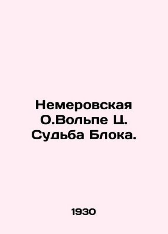 Nemerovskaya O. Volpe C. The Blocs Fate. In Russian /Nemerovskaya O.Volpe Ts. Sudba Bloka. On the basis of documents, memoirs, letters, notes, diaries and other materials of the L. Publishing House of Writers in Leningrad. 1930. 278, 2 c. We have thousands of titles and often several copies of each title may be available. Please feel free to contact us for a detailed description of the copies available. SKUalbcf087cc1e3f358c9.
