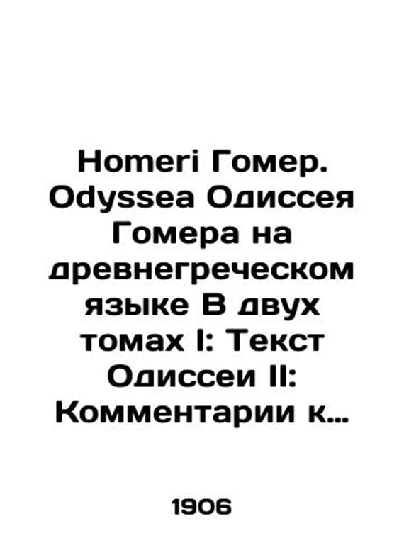 Homeri Homer. Homers Odyssey in Ancient Greek In Two Volumes I: Text of Odyssey II: Commentary on the Odyssey. In Russian /Homeri Gomer. Odyssea Odisseya Gomera na drevnegrecheskom yazyke V dvukh tomakh I: Tekst Odissei II: Kommentarii k Odissee. Ausgabe fur den schulgebraucht Text und Kommentar HKluge Gotha: Friedrich Andreas Perthes 1906g 340c,. We have thousands of titles and often several copies of each title may be available. Please feel free to contact us for a detailed description of the copies available. SKUalbcf17277c2b43efac.