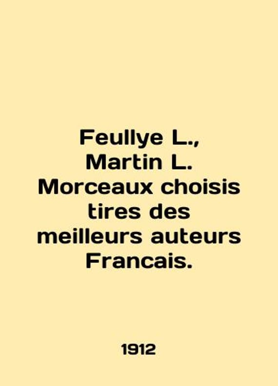 Feullye L., Martin L. Morceaux choisis tires des meilleurs auteurs Francais. In English /Feullye L., Martin L. Morceaux choisis tires des meilleurs auteurs Francais. Selected passages from the best French authors. St. Petersburg,: Imprimerie trenke et fusnot. 1912. We have thousands of titles and often several copies of each title may be available. Please feel free to contact us for a detailed description of the copies available. SKUalbcf2689c3b385f58b.
