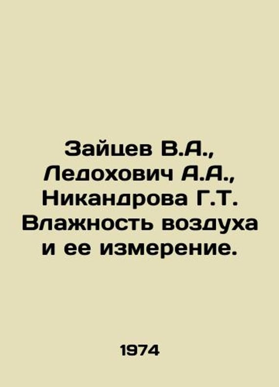 Zaitsev V.A., Leshovych A.A., Nikandrova G.T. Air humidity and its measurement. In Russian /Zaytsev V.A., Ledokhovich A.A., Nikandrova G.T. Vlazhnost vozdukha i ee izmerenie. L. Hydrometeo Issuance 1974. We have thousands of titles and often several copies of each title may be available. Please feel free to contact us for a detailed description of the copies available. SKUalbcf43012632f86569.