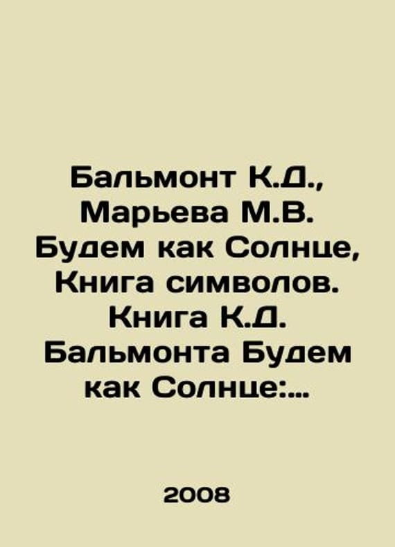 Balmont K.D., Marieva M.V. Lets be like the Sun, The Book of Symbols. Balmont K.D. Lets be like the Sun: The Eclectic that Became Harmony. In Russian /Balmont K.D., Mareva M.V. Budem kak Solntse, Kniga simvolov. Kniga K.D. Balmonta Budem kak Solntse: Eklektika, stavshaya garmoniey. Postscript by T. Petrova, text reading by O. Yepishev, M. Marieva Ivanovo Publisher O.V. Yepisheva 2008. We have thousands of titles and often several copies of each title may be available. Please feel free to contact us for a detailed description of the copies available. SKUalbcf4304dd12104980.