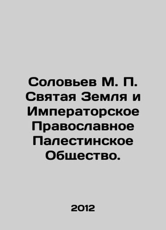 Nightingale M.P. The Holy Land and the Imperial Orthodox Palestinian Society. In Russian /Solovev M. P. Svyataya Zemlya i Imperatorskoe Pravoslavnoe Palestinskoe Obshchestvo. M. Indrik 2012. 248 p. We have thousands of titles and often several copies of each title may be available. Please feel free to contact us for a detailed description of the copies available. SKUalbcf47b027c3039696.